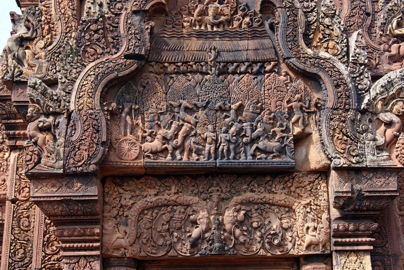 Banteay Srey loosely translates to ‘citadel of the women,’ but this is a modern appellation due to the delicate beauty of the carvings. The walls are densely covered the most beautiful, deep and intricate carvings, a ‘technique of sandalwood carving with even an Indian scent to it.’